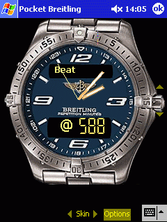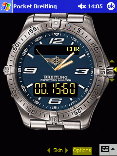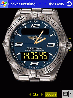 | PocketBreitling is skinnable and can use both custom backgrounds as well as custom sounds. Features include: - Skinnable background - Custom sound - Numerous time and date functions - Elegant look and feel |